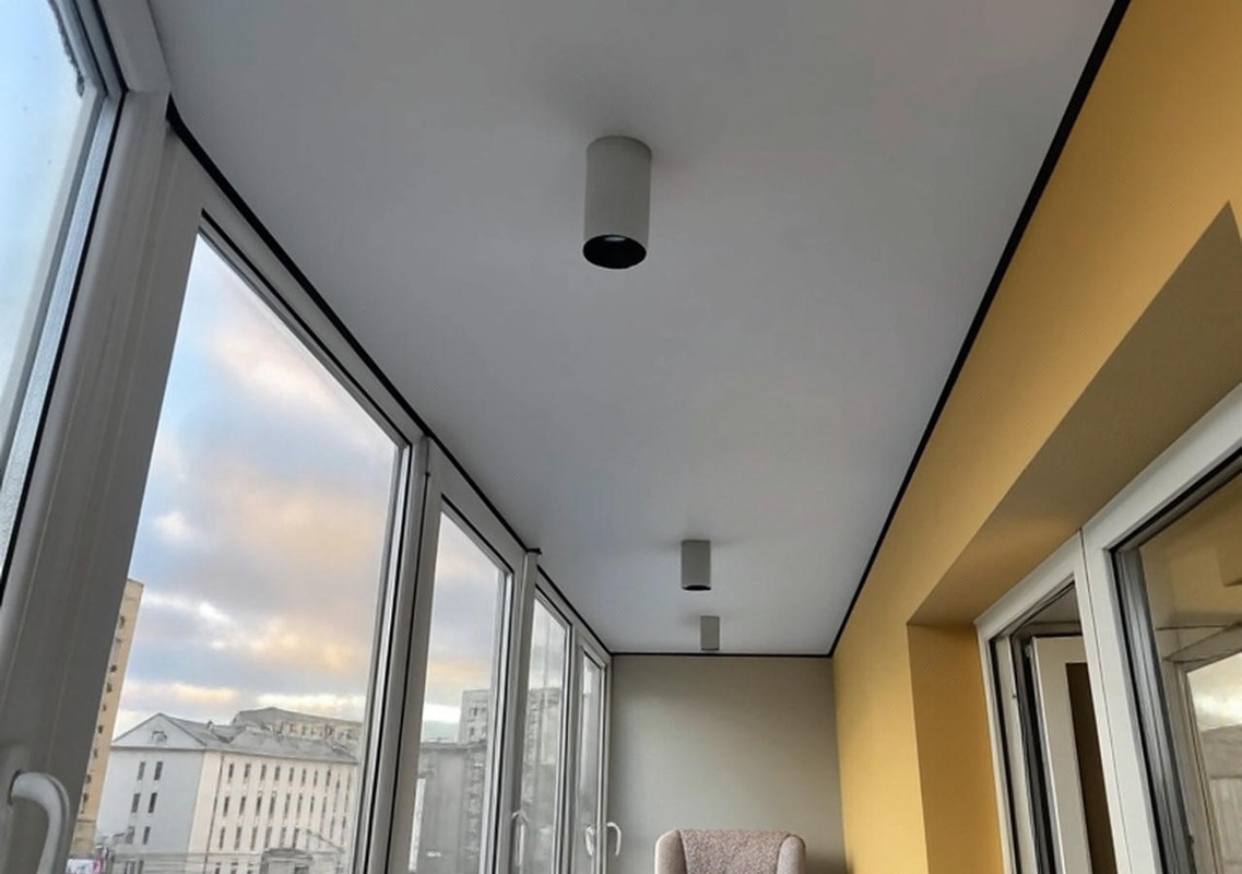 Для балкона рекомендуется использовать алюминиевый профиль, который не деформируется при температурных колебаниях. Теневой натяжной потолок с соответствующим профилем создает эффект парящей конструкции.